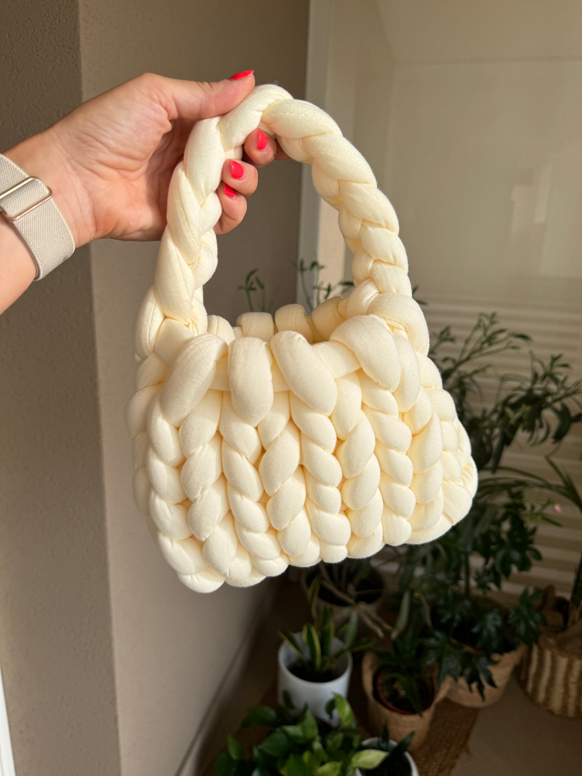 realizzata con la tecnica dell’ hand crocheting, disponibile in quattro colori.